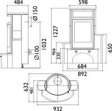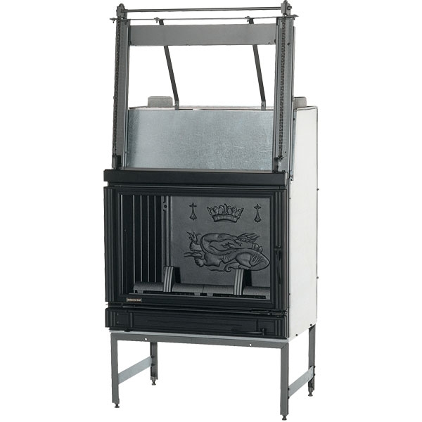 Боковое открывание дверцы. Внутри чугун "саламандра".