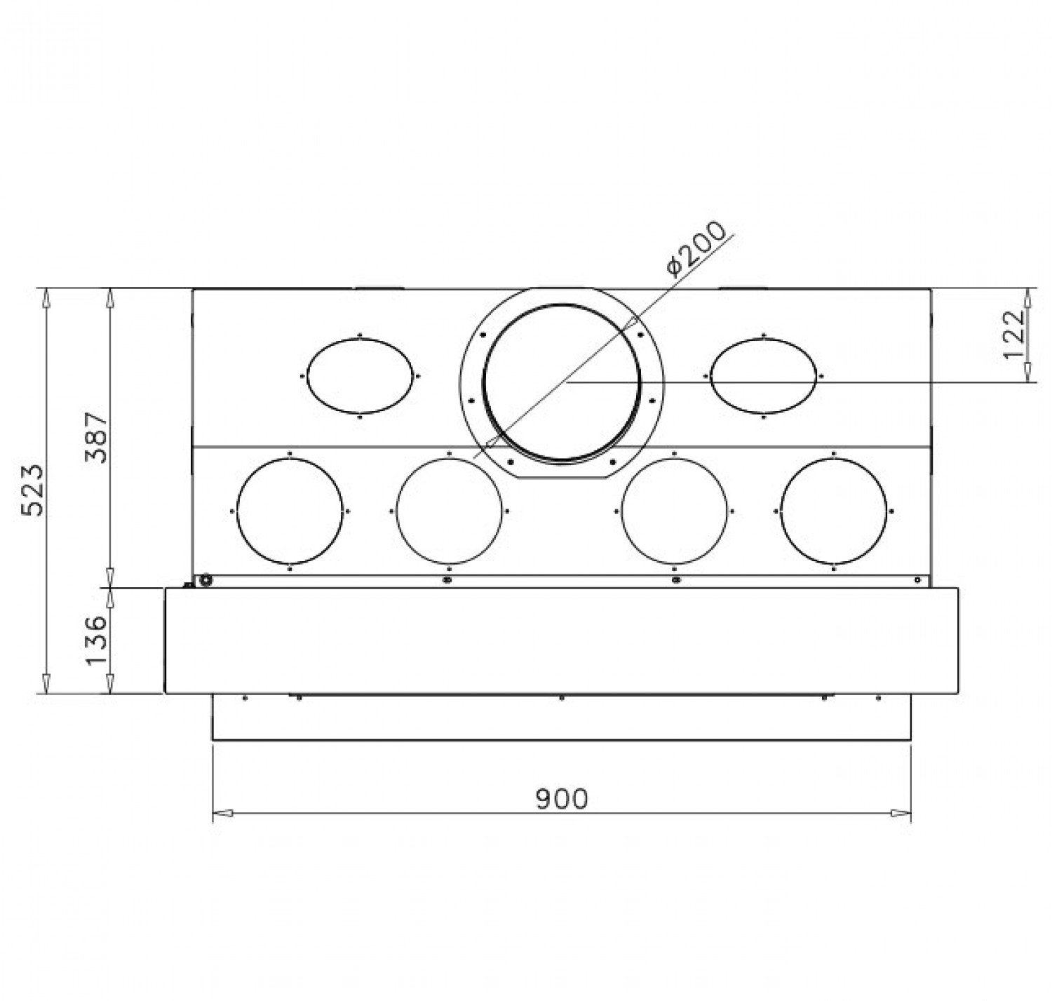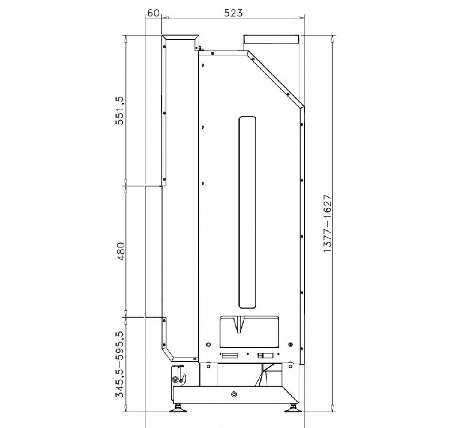 Односторонняя стальная топка с плоским стеклом. Дверца с подьемом вверх.