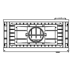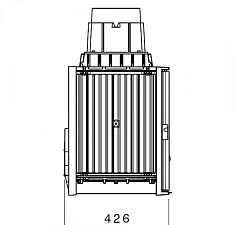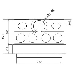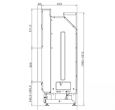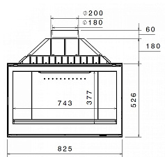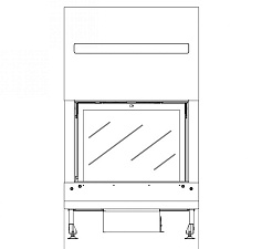 Односторонняя стальная топка с плоским стеклом. Дверца с подьемом вверх. Скошенные углы.