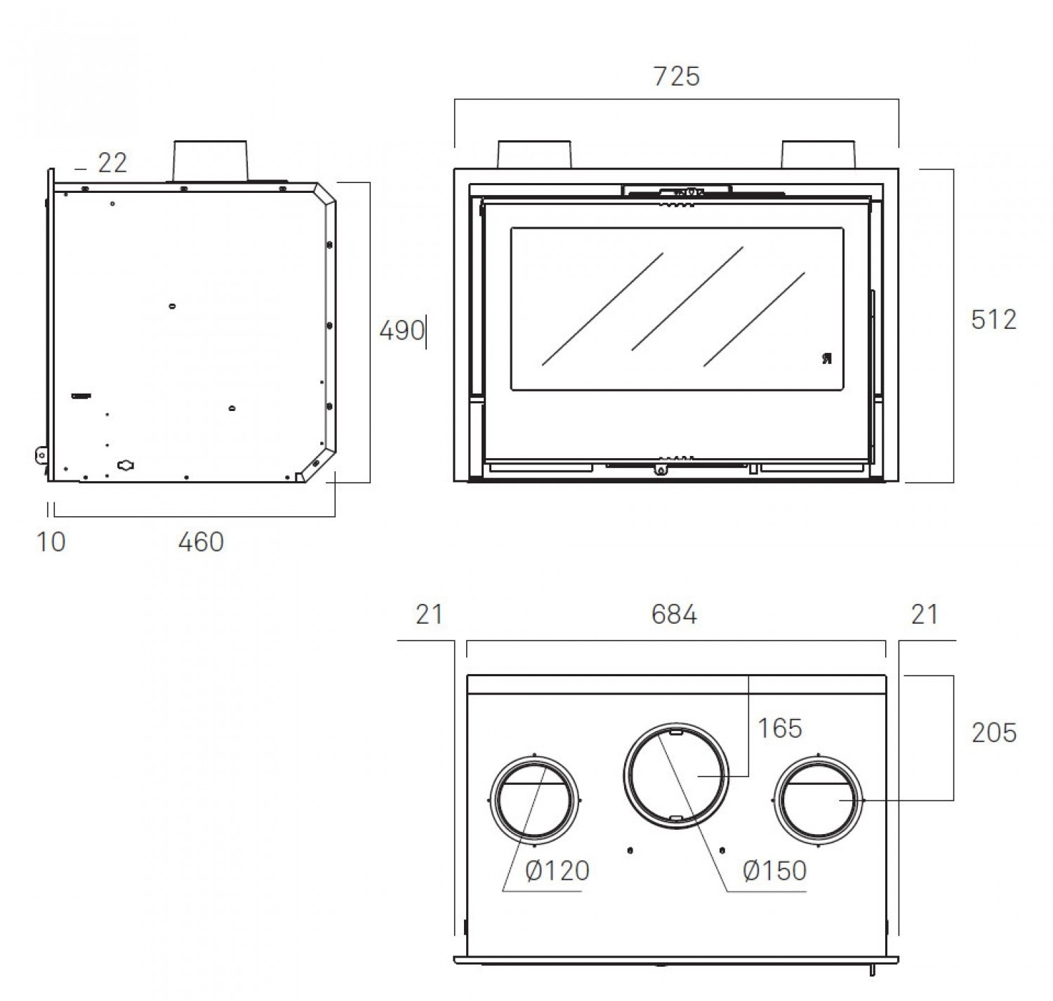 Стальной инсерт с первичным и вторичным регистром подачи воздуха, благодаря чему перед попаданием в очаг воздух сначала прогревается.
