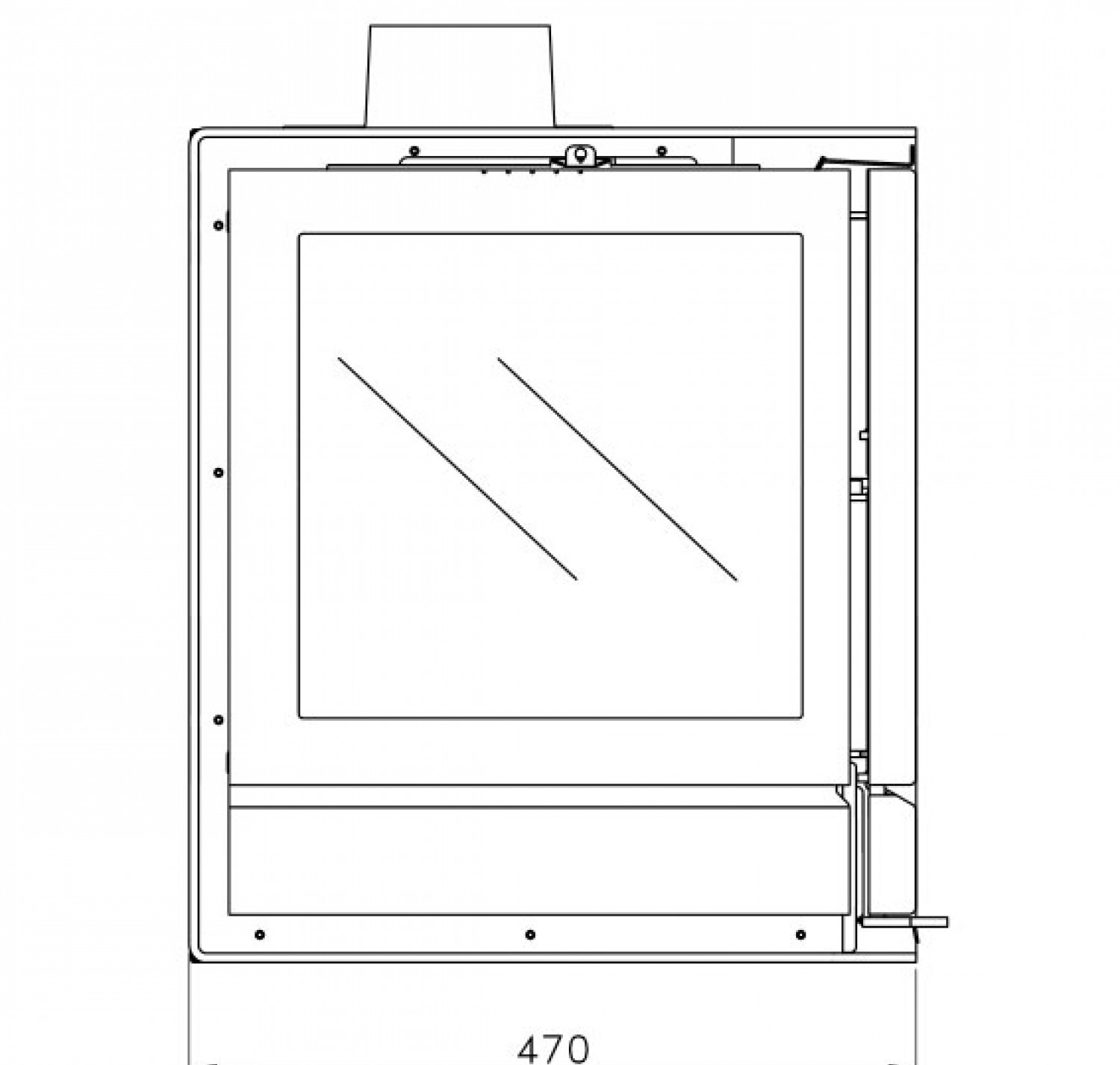 Стальной вертикальный инсерт с первичным и вторичным регистром подачи воздуха, благодаря чему перед попаданием в очаг воздух сначала прогревается.