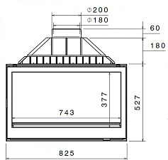 - Поперечное сечение отверстия выхода дыма - Ø230 см.