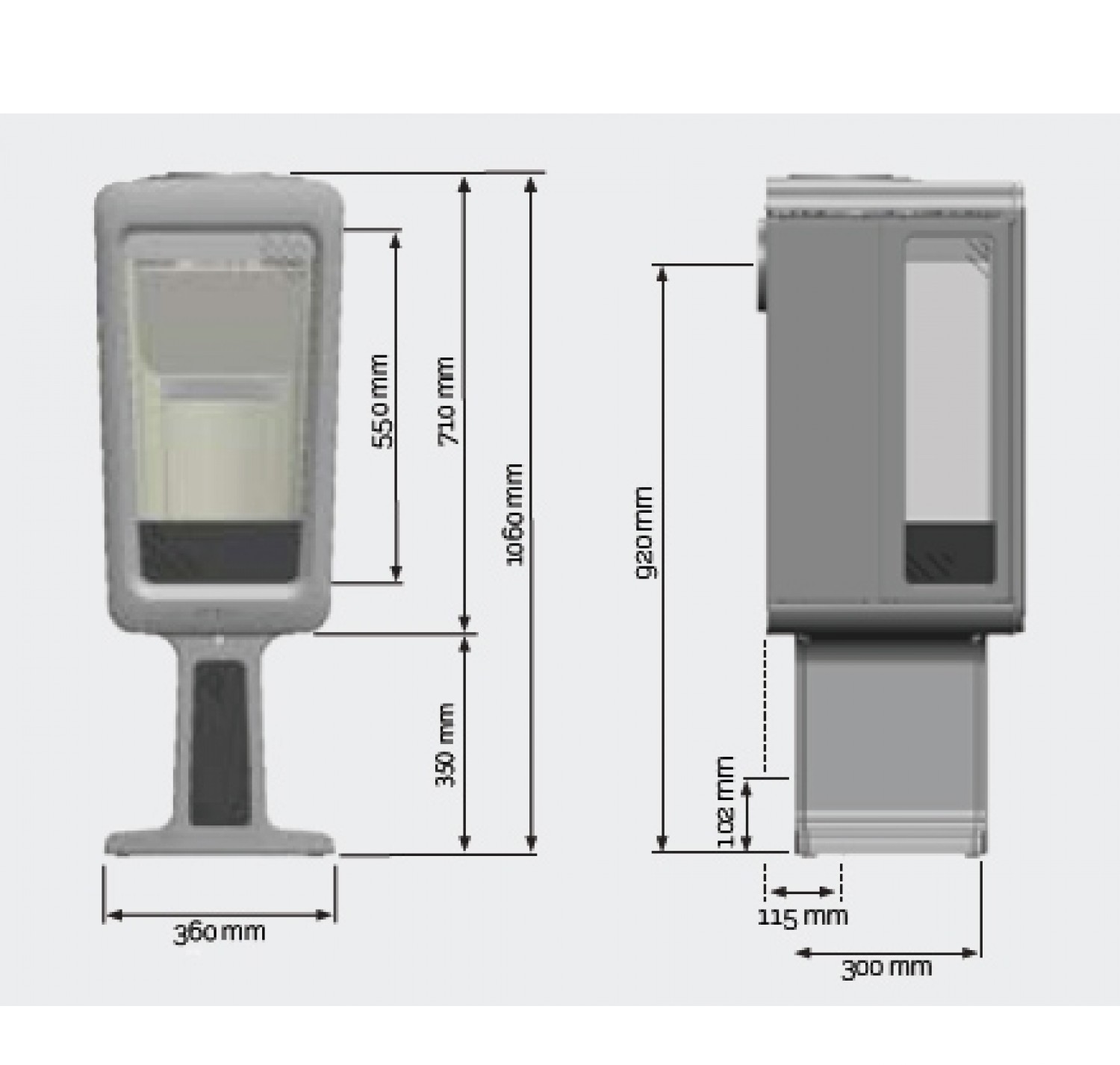 Печь-камин Keddy K-815 изготовлена из чугуна. Большое центральное и 2 боковых стекла.