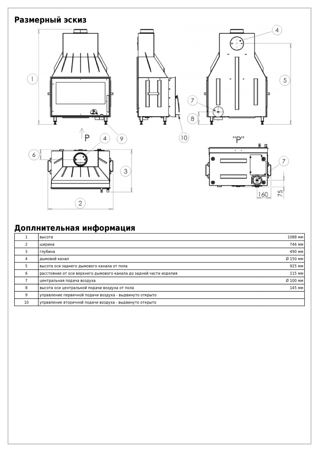 • Диаметр дымохода, (мм)