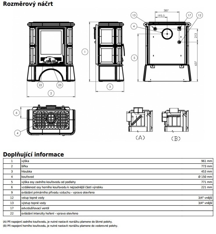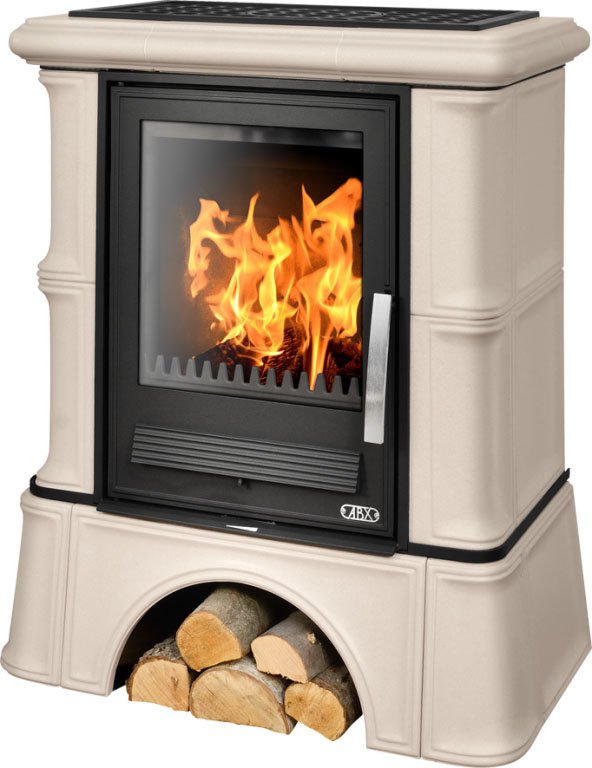 Печь камин ABX BAVARIA K (6,9 кВт в воду), кафельный цоколь – вставка КОМБО (чугун + сталь) – это изразцовая европейская модель, предназначенная для работы на сухих дровах лиственных пород дерева или брикетах. Чешская компания ABX выпускает камины и печи с 1993 года, её продукция в основном представлена на рынках Европы и США, теперь камины ABX доступны и в России качество исполнения продукции компании ABX держится на высочайшем уровне. Топка печи выполнена из долговечной и высококачественной стали, а дверца из чугуна. Огнеупорное стекло (стеклокерамика) выдерживает температуру до 750 градусов. Печью камином можно отопить помещение от 100 до 248 кубических метров, тепло в помещение поступает через стекло дверцы прямым излучением тепла и посредством конвенции, холодный воздух поступает снизу печи и, проходя через пространство между топкой и облицовкой, выходит через конвекционные отверстия уже горячим. Вес печи в 172 кг, позволяет устанавливать её без отдельного фундамента. Топка печи имеет систему вторичного дожига. Уменьшая приток воздуха, можно перевести печь в режим длительного горения, увеличив время горения дров. Дровяная кафельная печь с водяной рубашкой (или контуром) предназначена для отопления загородного дома за счет циркуляции горячей воды (или антифриза). Печь подсоединяется к батареям центрального отопления. Работает система следующим образом: теплоноситель нагревается в топочной камере, далее «выталкивается» в трубы, а через них в радиаторы, проходит по всему дому, отдавая энергию, затем уже в остывшем виде возвращается обратно в печь камин. Для лучшей циркуляции воды (антифриза) по закольцованной системе используется специальный насос, для защиты оборудования от последствий перегрева - расширительный бак. Изразцовые печи проектируют и изготавливают вручную на заводах компании ABX. Облицовка изразцовых печей экологически чиста и надежна, сохраняет тепло более пяти часов после прогорания дров.Печь камин ABX BAVARIA K (6,9 кВт в воду), кафельный цоколь – вставка КОМБО (чугун + сталь), облицована красивейшим кафелем выдерживающем высокие температуры и очень долговечным, а различные варианты цветовых исполнений камина позволят подобрать тот вариант, который наиболее гармонично впишется в интерьер. Печь камин настолько качественно сделана, что компания производитель ABX даёт на неё гарантию 5 лет.