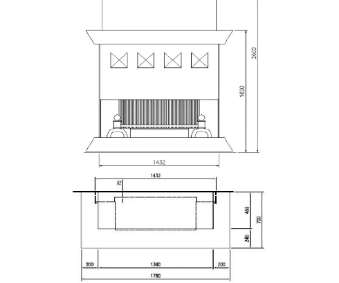 Цена указана за камин в стандартном исполнении (см. чертеж).