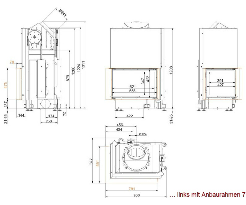 Топка Architektur-Kamin Eck 45/67/44 с подъмом, с одним стеклом.