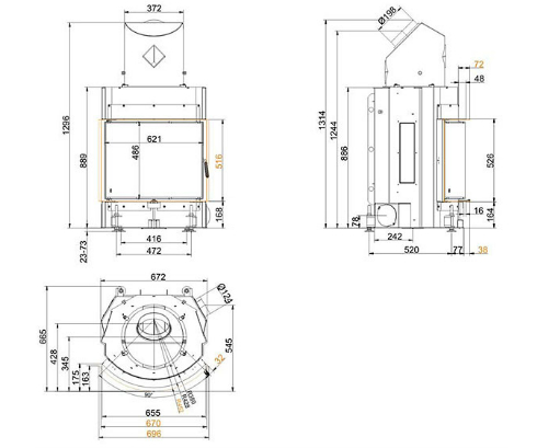 Топка КК 51/67 без подъема с одним полукруглым стеклом