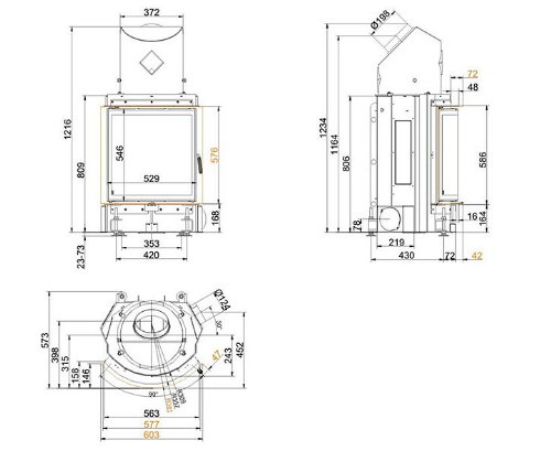 Топка КК 57/55 без подъема с одним полукруглым стеклом
