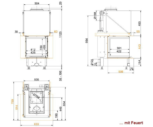 Топка Panorama-Kamin 42/42/42/42 с подъмом, с одним стеклом.