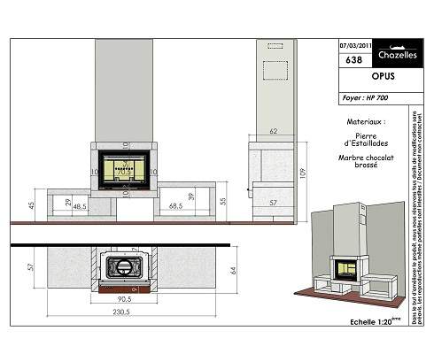 Цена указана за камин в стандартном исполнении (см. чертеж) из указанных материалов без топки.