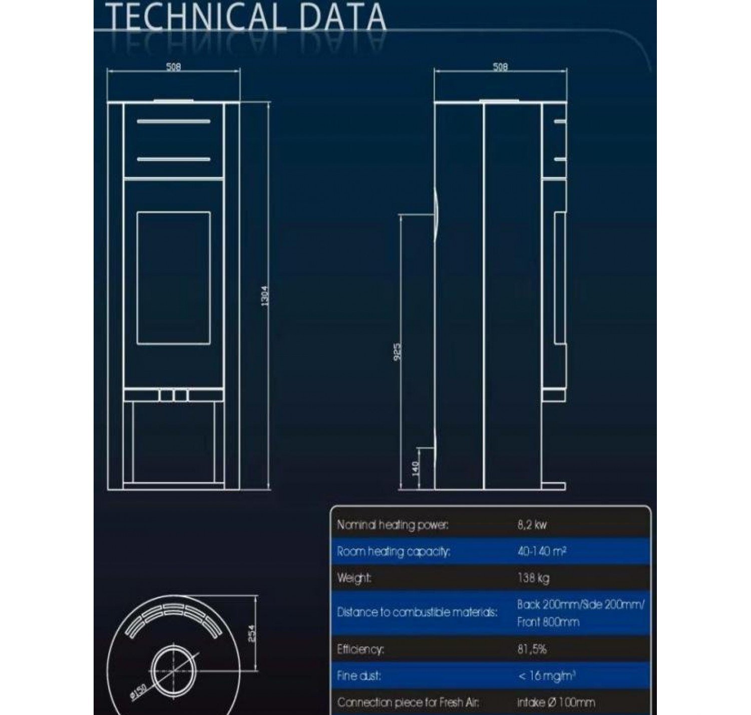 • Диаметр дымохода, (мм)