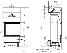 Топка снабжена 4 стеклянными изогнутыми пирокерамическими дверцами, две из которых открываются.