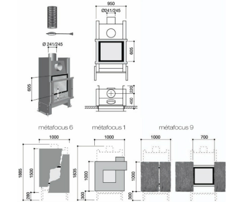Фасады Métafocus также существуют со встроенной поддерживающей рамой и могут быть установлены с топками других производителей.