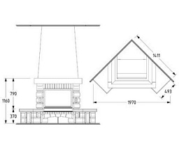 За передними панелями находится топка с поднимающейся кверху застекленной дверцей из пирокерамического стекла, которая открывается сбоку.