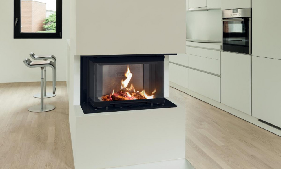 - В этой топки прямое стекло и стандартное боковое открывание двери.