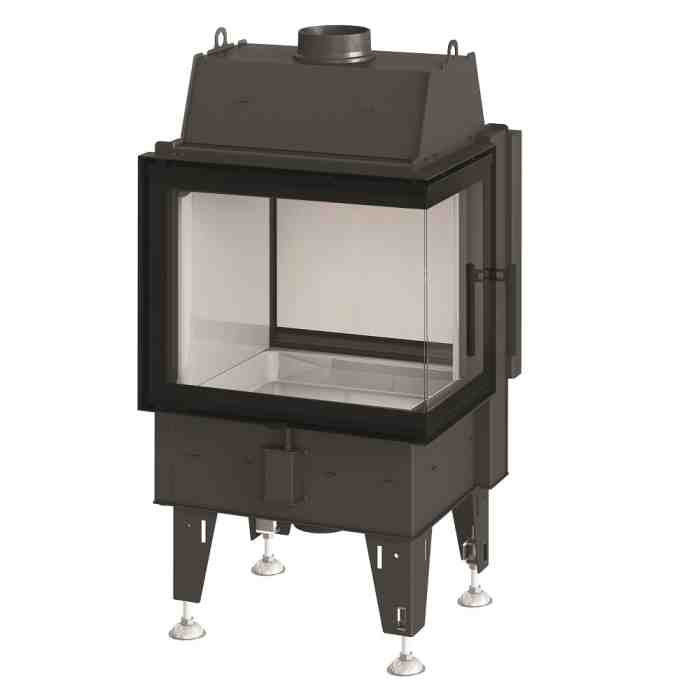Каминная топка BeF Twin 7 N CP двухсторонняя со стальной задней дверцей, с возможностью подачи топлива со смежного помещения, обе двери с боковым открыванием, одна в угловом исполнении (цельное гнутое стекло).