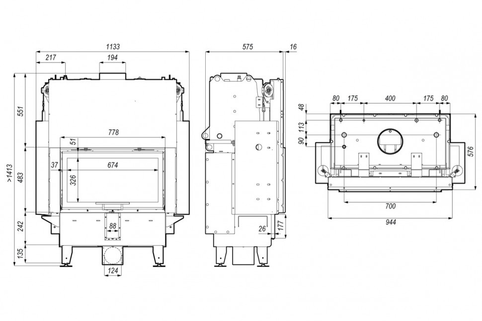 - Габаритные размеры ШxГxВ, (мм): 1133x591x1413
