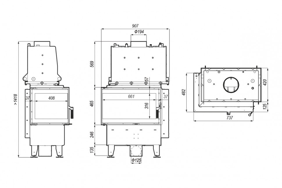 - Габаритные размеры ШxГxВ, (мм): 907x545x1418