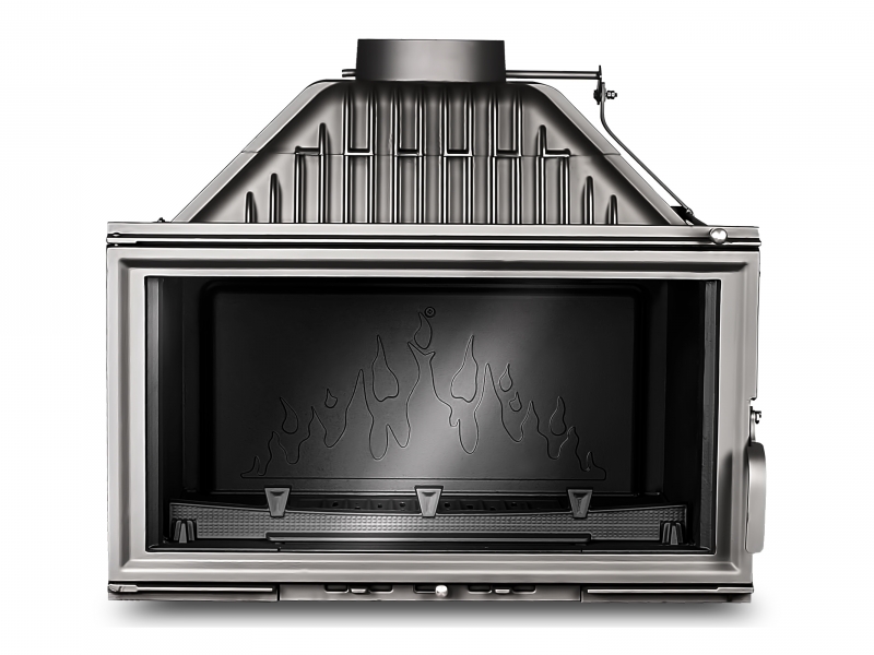 Каминная топка W15-12 кВт является классической топкой производимой заводом KAWMET по современным технологиям, топка выполнена из толстого чугуна класса EN-GJL- 200 и оборудована подводом наружного воздуха в камеру сгорания, встроенным шибером для регулировки процесса горения и дымоотведения, и более точной регулировкой подачи воздуха через нижнюю часть дверцы под колосниковую решетку, открыв ее на максимум, вы подаете к дровам оптимальное количество воздуха для быстрого розжига.