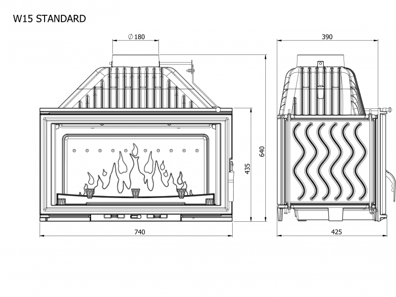 Каминная топка W15 STANDARD 18 кВт это классическая топка KAWMET, с отличными характеристиками и великолепной ценой. Используется для отопления помещений как качественный дизайнерский отопительный прибор, а также как предмет интерьера. Жаростойкая плита в задней части топки декорирована фениксом. Топка отличается большим стеклом и высокой мощностью подходящей для отопления частных домов, ресторанов, гостиниц, домов отдыха семейного типа и т.п.