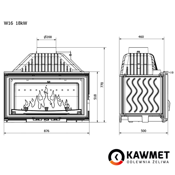 Каминная топка Kaw-Met W16 18 кВт с отличными характеристиками и великолепной ценой, используется для отопления помещений, а также как предмет интерьера. Выполнена из чугуна класса EN-GJL- 200, представляет собой качественный дизайнерский отопительный прибор.