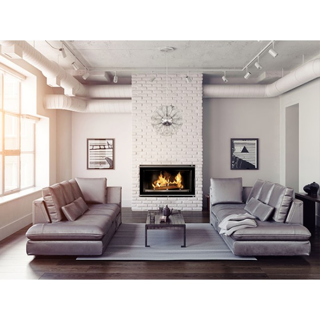 • Система подачи наружного воздуха на стекло с регулировкой, подавая воздух на внутреннюю сторону стекла, вы, тем самым, создаете направленный поток, который будет препятствовать оседанию сажи, стекло значительно дольше будет оставаться чистым, чтобы вы наслаждались игрой живого укрощенного огня.