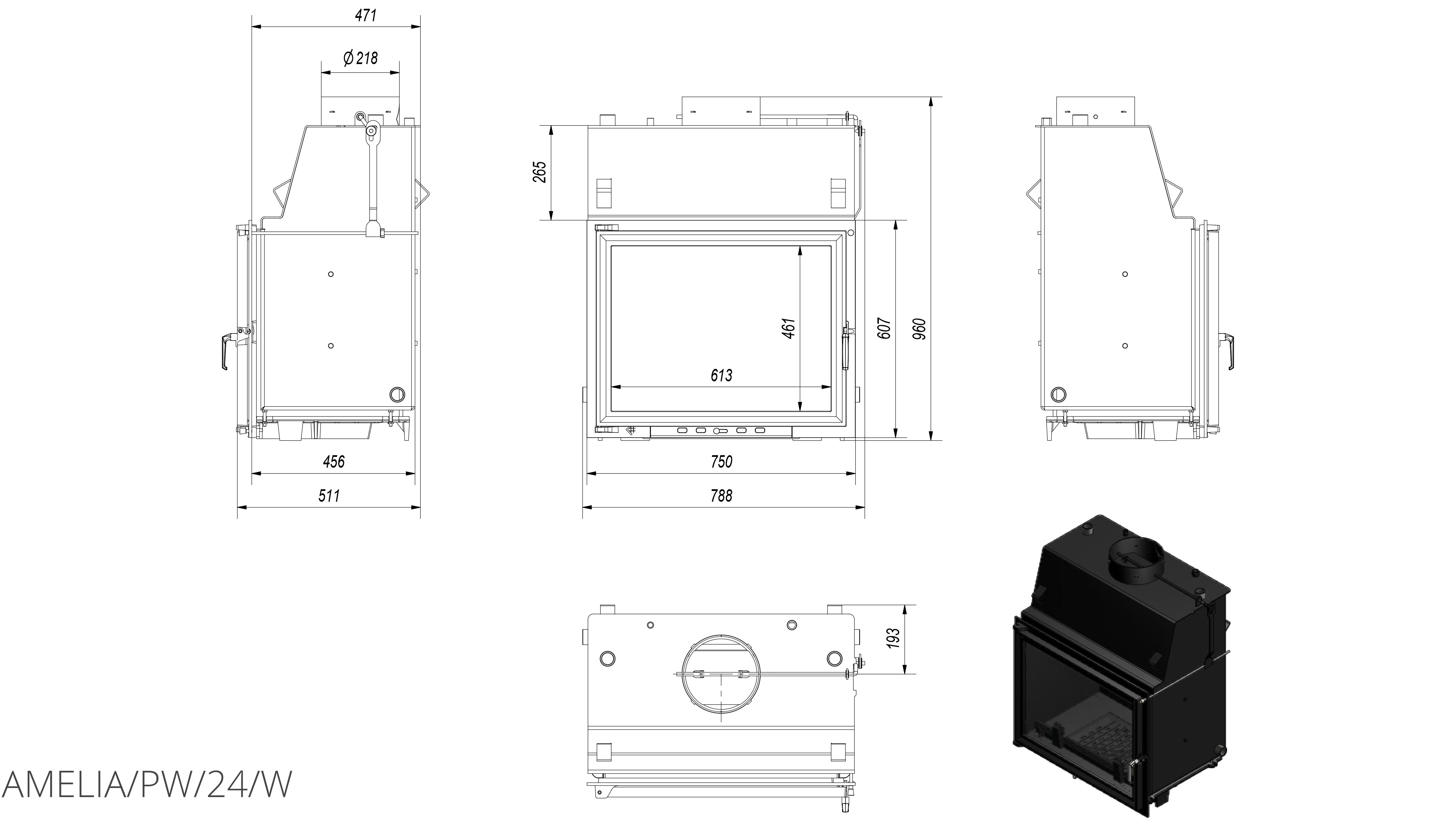 Каминная топка с водяным контуром Kratki Amelia/PW/24/W приспособлена для интенсивного сгорания, где применены технологии и материалы создают удобную, экономичную и экологическую топку с высокой эффективностю.