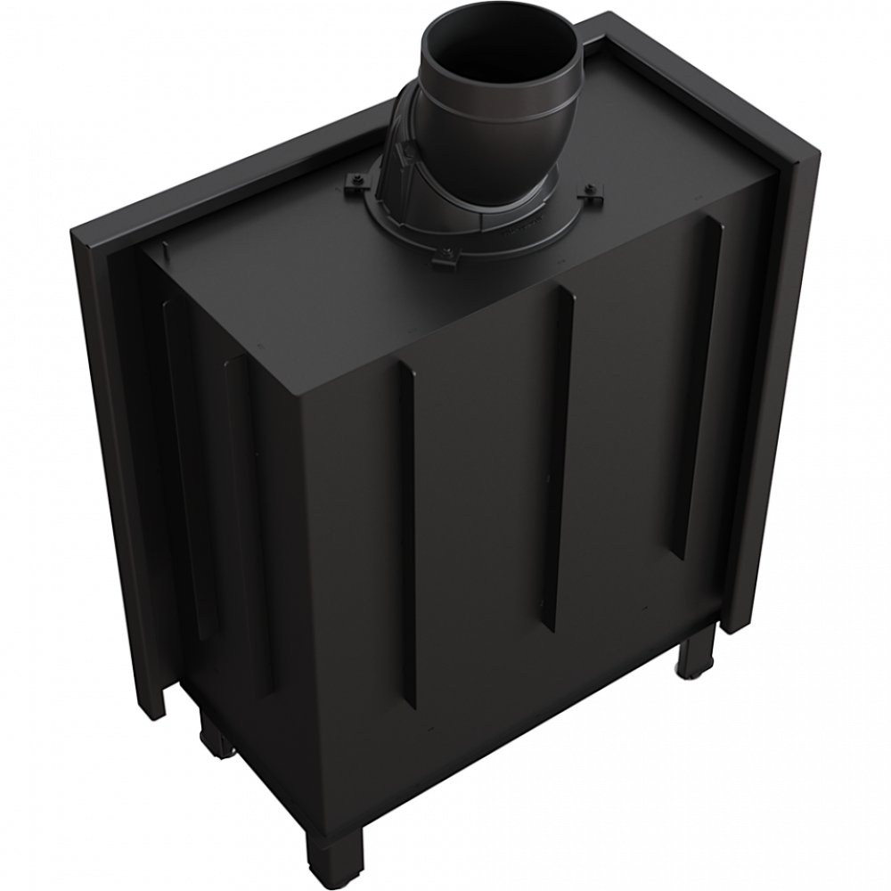 - Кроме того, для топки используется система чистого стекла (воздушная завеса), то есть воздух подается прямо на стекло через систему каналов, расположенных по бокам камина. Таким образом, кислород поступает в верхнюю часть камеры сгорания, где происходит сгорание газов, возникших в процессе сжигания дров, что дополнительно уменьшает выброс вредного СО в атмосферу.