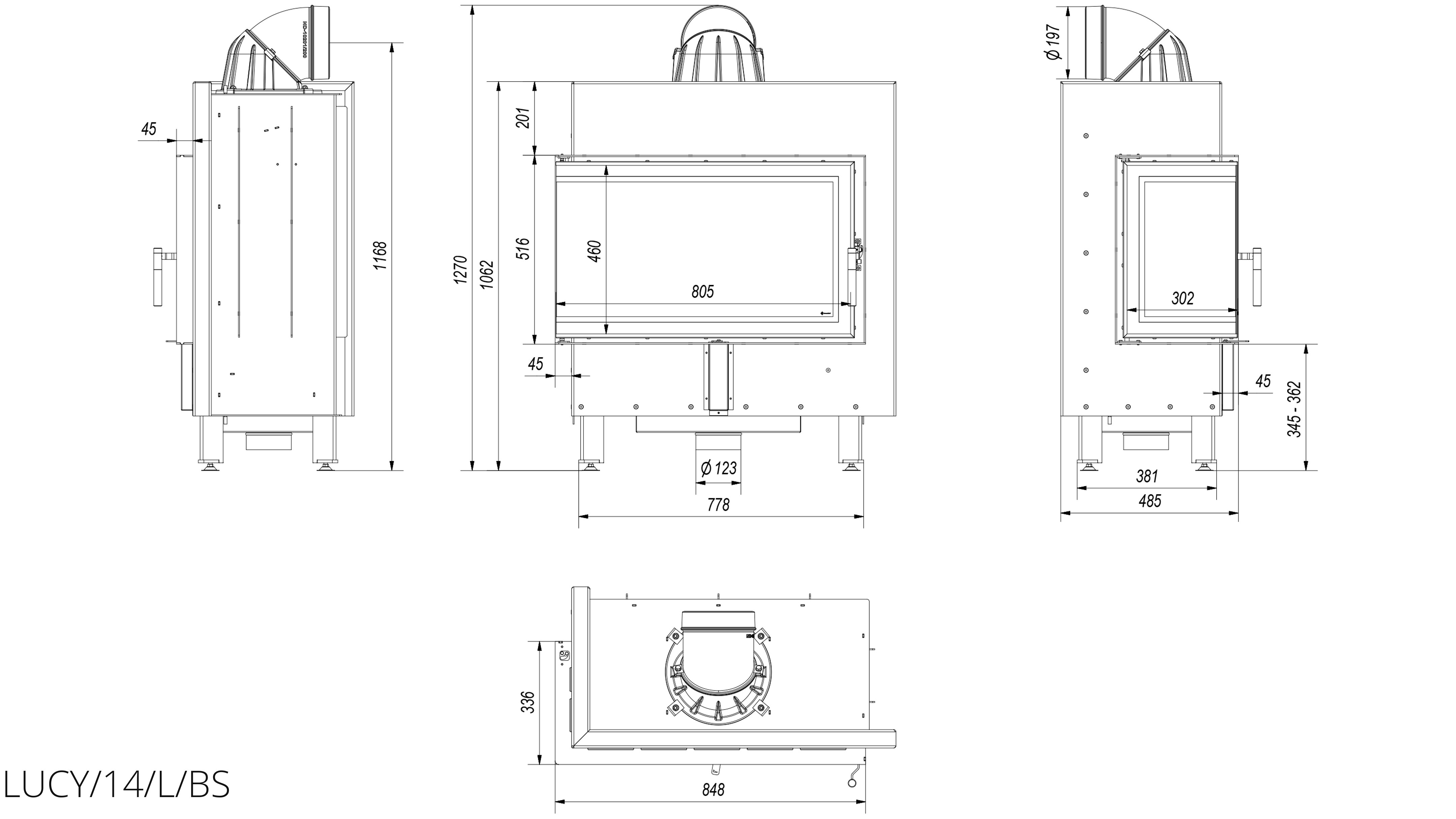 Каминная топка Kratki Lucy/14/L/BS