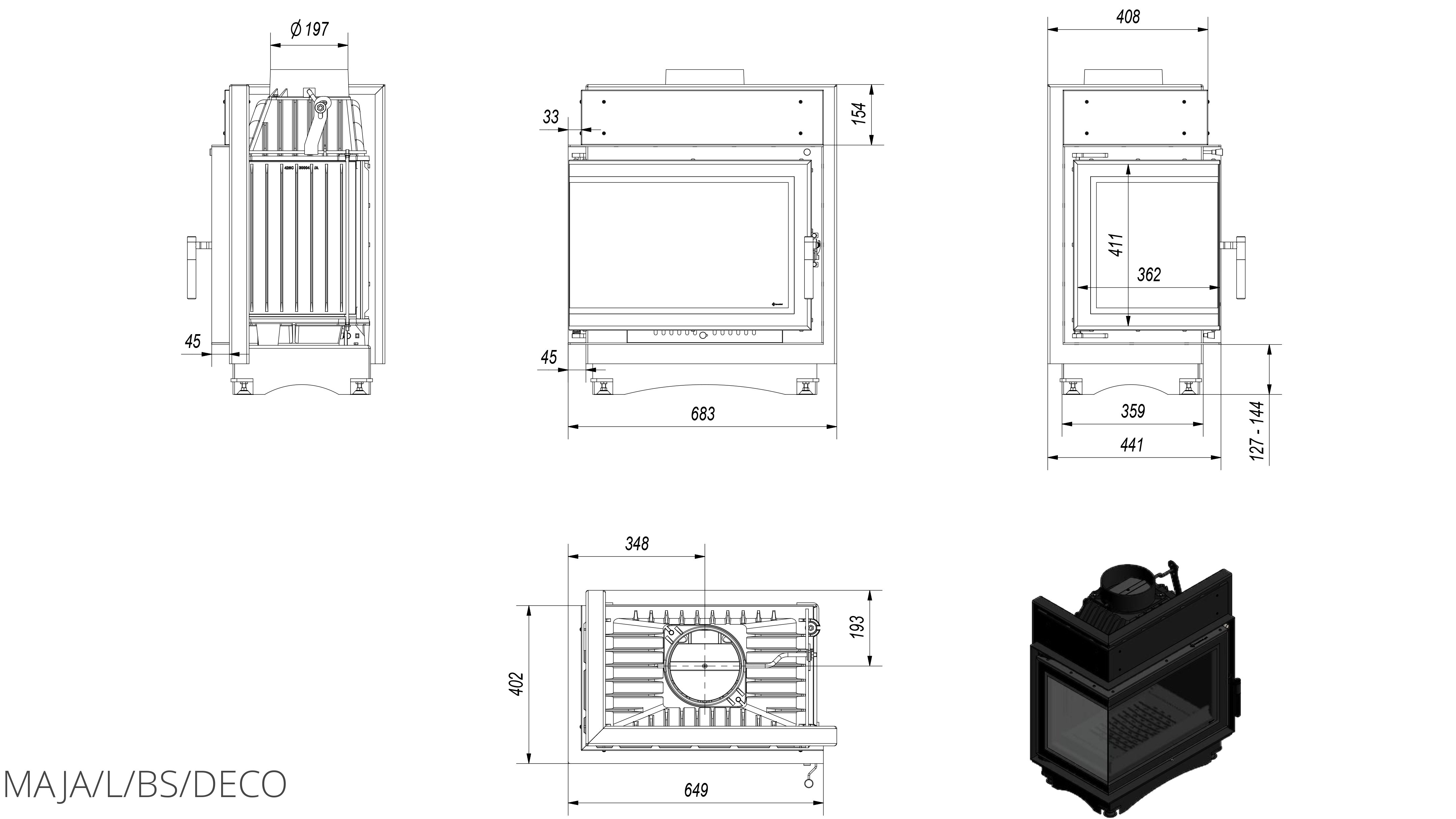 Чугунная каминная топка Kratki Maja/L/BS/Deco (Г-образное стекло слева) обладает рядом достоинств: компактные размеры, повышенный КПД и приличная площадь обогрева. Надежное отопительное оборудование высокого качества. Оснащена широким угловым и фронтальным остеклением без перемычек с декоративной отделкой.