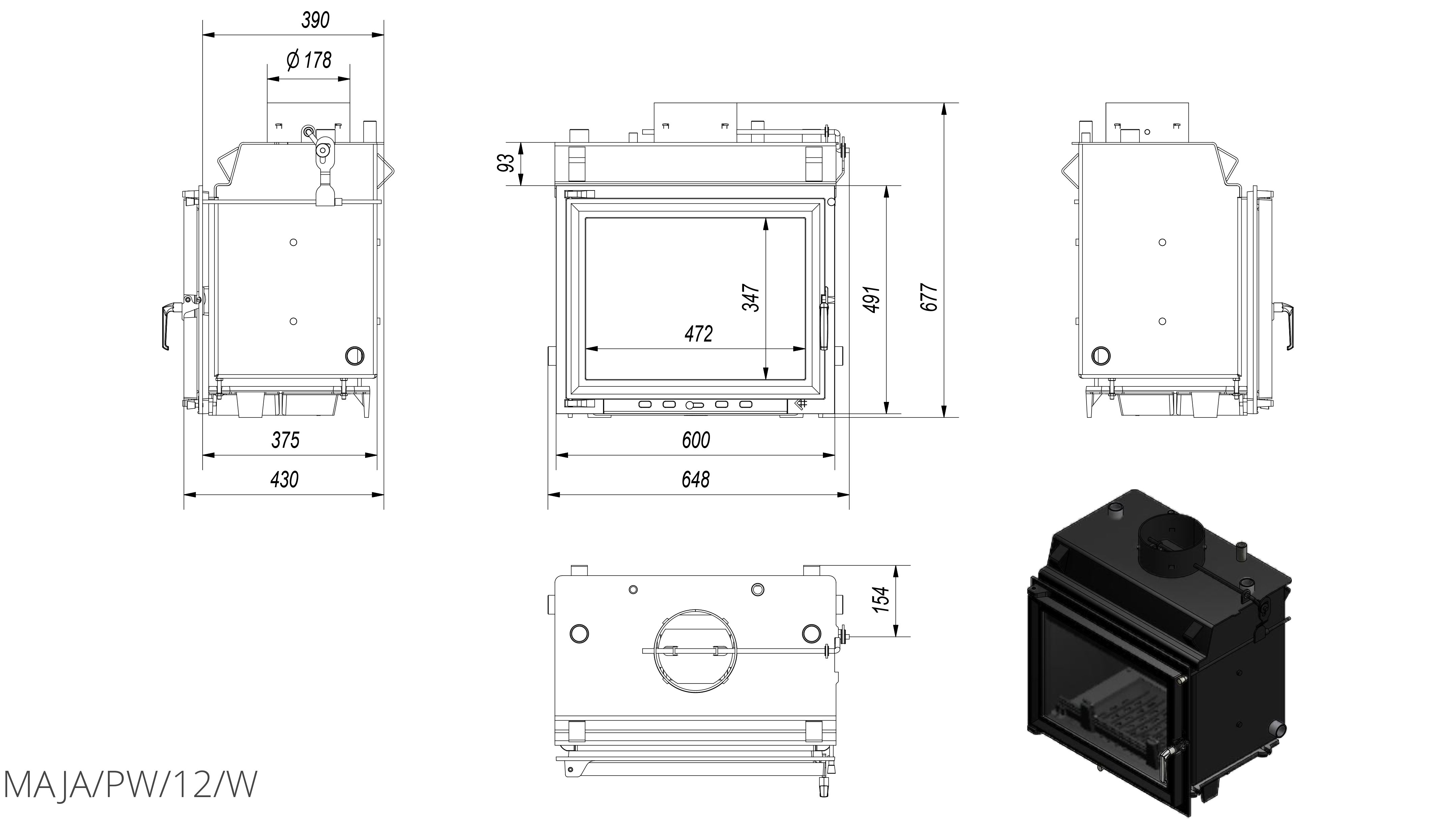 Каминная топка с водяным контуром Kratki Maja/PW/12/W, в которой используемые технологии и материалы создают эффективную, экономичную и экологическую топку с высокой эффективностью. Данный прибор предполагает подключение к системе отопления и может использоваться как основной обогреватель или как дополнительный источник тепла.
