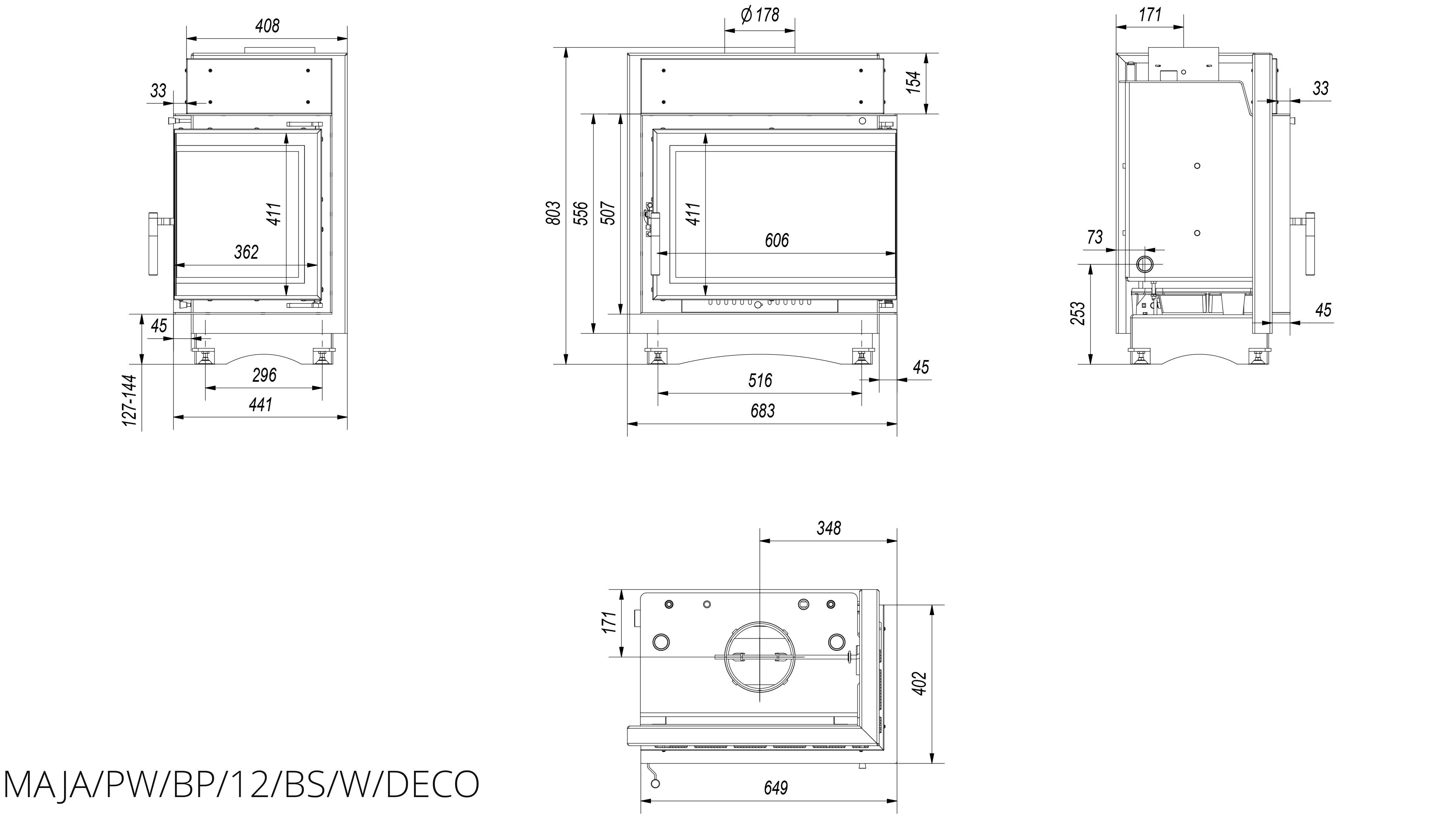 Каминная топка Kratki Maja/PW/BP/12/BS/W/Deco