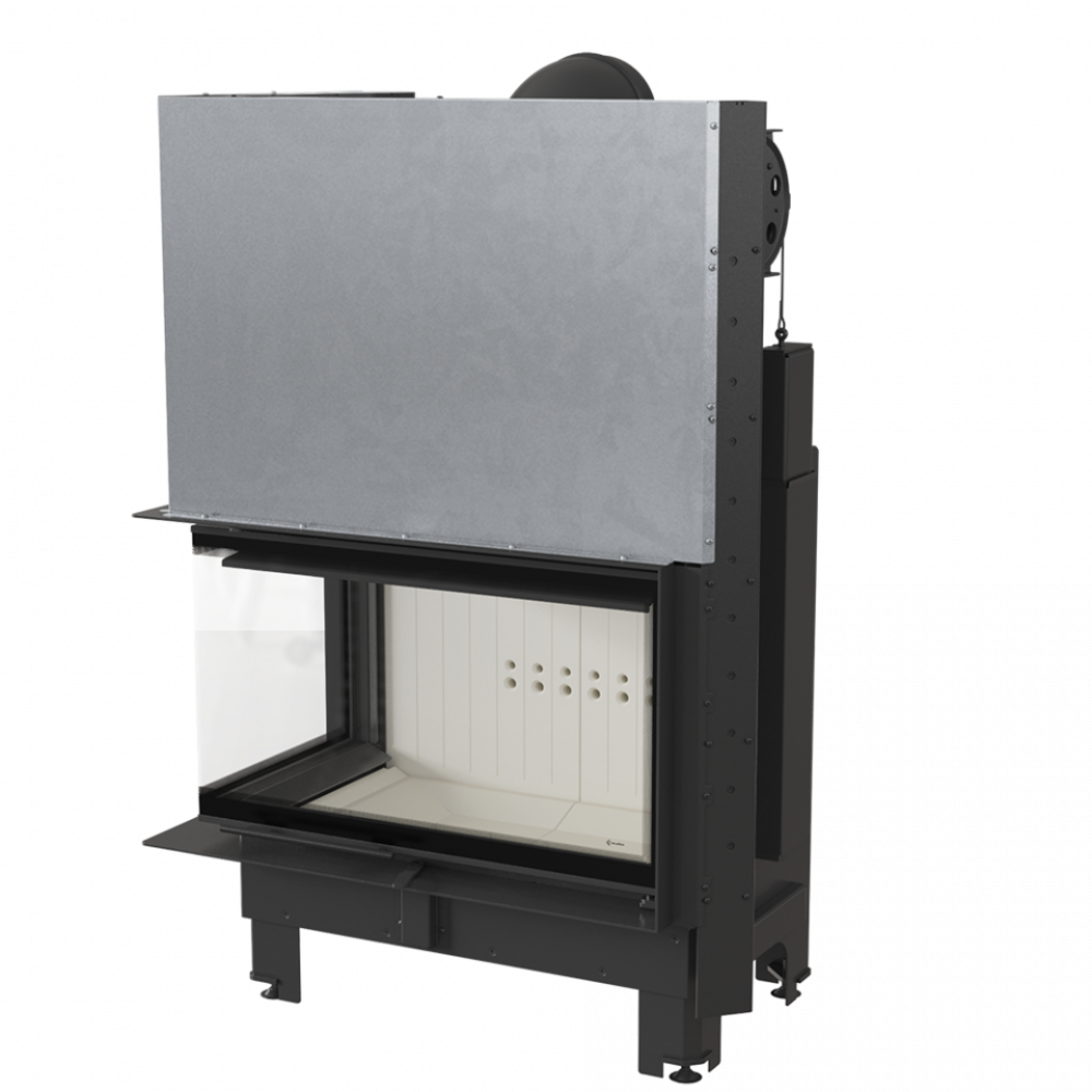 Стальная каминная топка Kratki MBO/L/BS/G/SG (Г-образное стекло слева, гильотина) предназначена для монтажа камина угловой конструкции. Большая камера сгорания футерована современной керамикой Acumotte и прикрыта двухсторонним просмотровым стеклом. В камине реализован принцип подового горения. Для удобства прибор оснащен дымоходом с поворотным регулированием.
