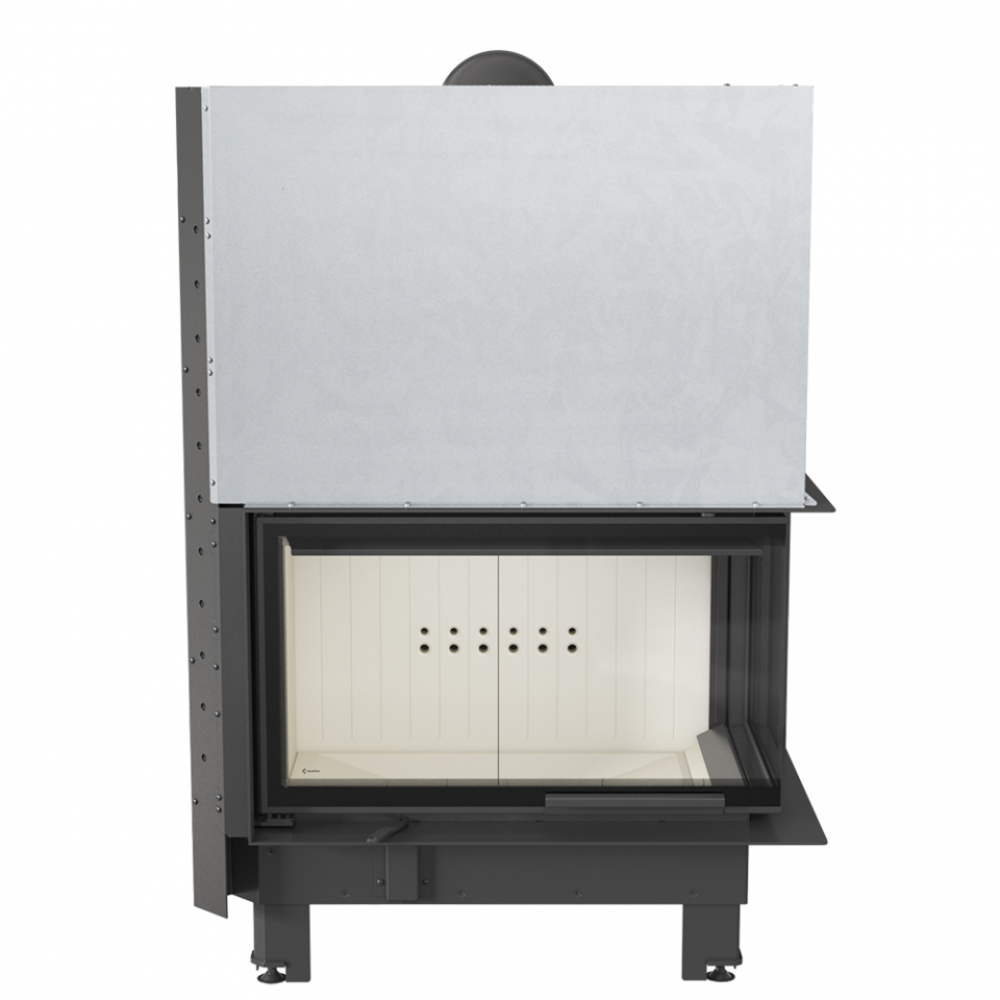 Стальная каминная топка Kratki MBO/P/BS/G/SG (Г-образное стекло справа, гильотина) предназначена для монтажа камина угловой конструкции. Большая камера сгорания футерована современной керамикой Acumotte и прикрыта двухсторонним просмотровым стеклом. В камине реализован принцип подового горения. Для удобства прибор оснащен дымоходом с поворотным регулированием.