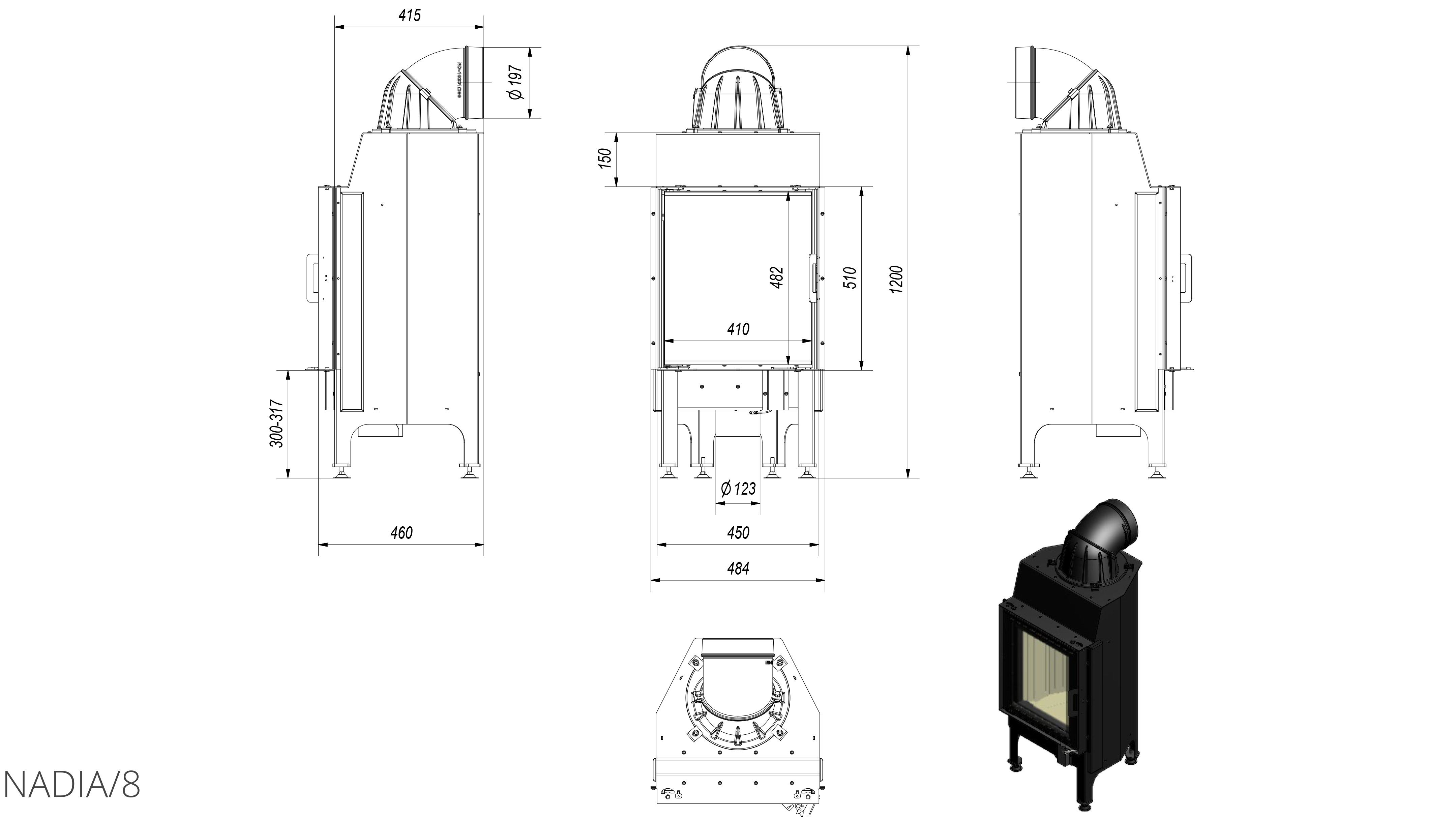 - Можно применять при различных монтажных условиях благодаря регулируемым ножкам и подвижному дымоходному отверстию с регулировкой установки 360°.