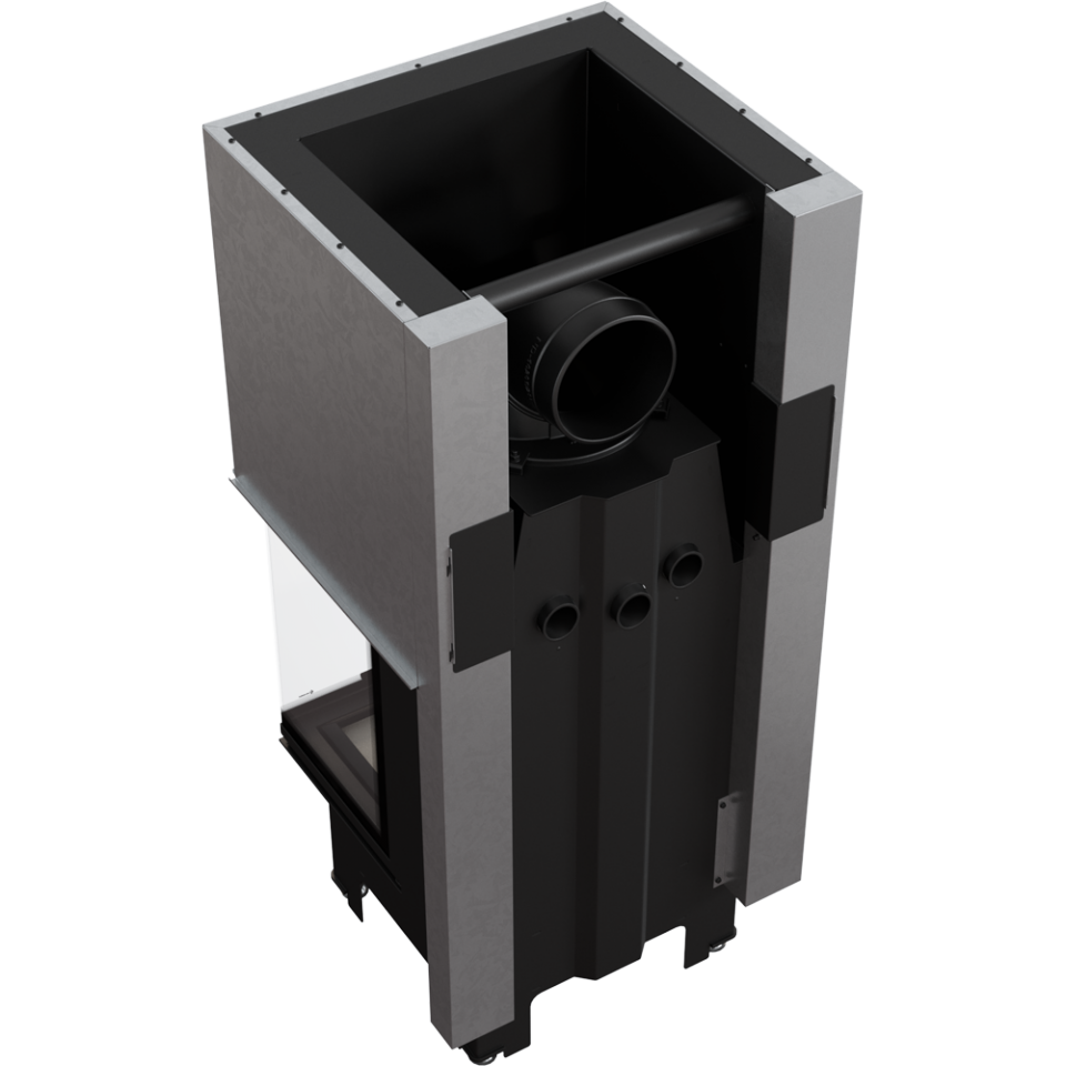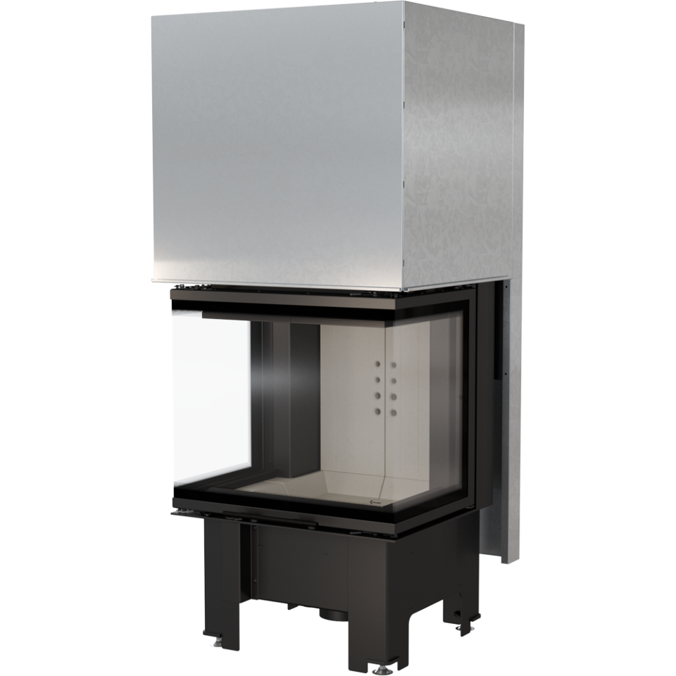 Стальная Каминная топка Kratki NBC 9 (П-образное стекло, гильотина) характеризуется отличным обзором, благодаря специальному трехстороннему остеклению. Дверца для закладки дров имеет возможность открытия вверх (подъемный механизм) и в бок (для удобства чистки стекла). Кроме современного внешнего вида, агрегат обладает функцией отопления и способен прогревать площадь до 90 квадратных метров.