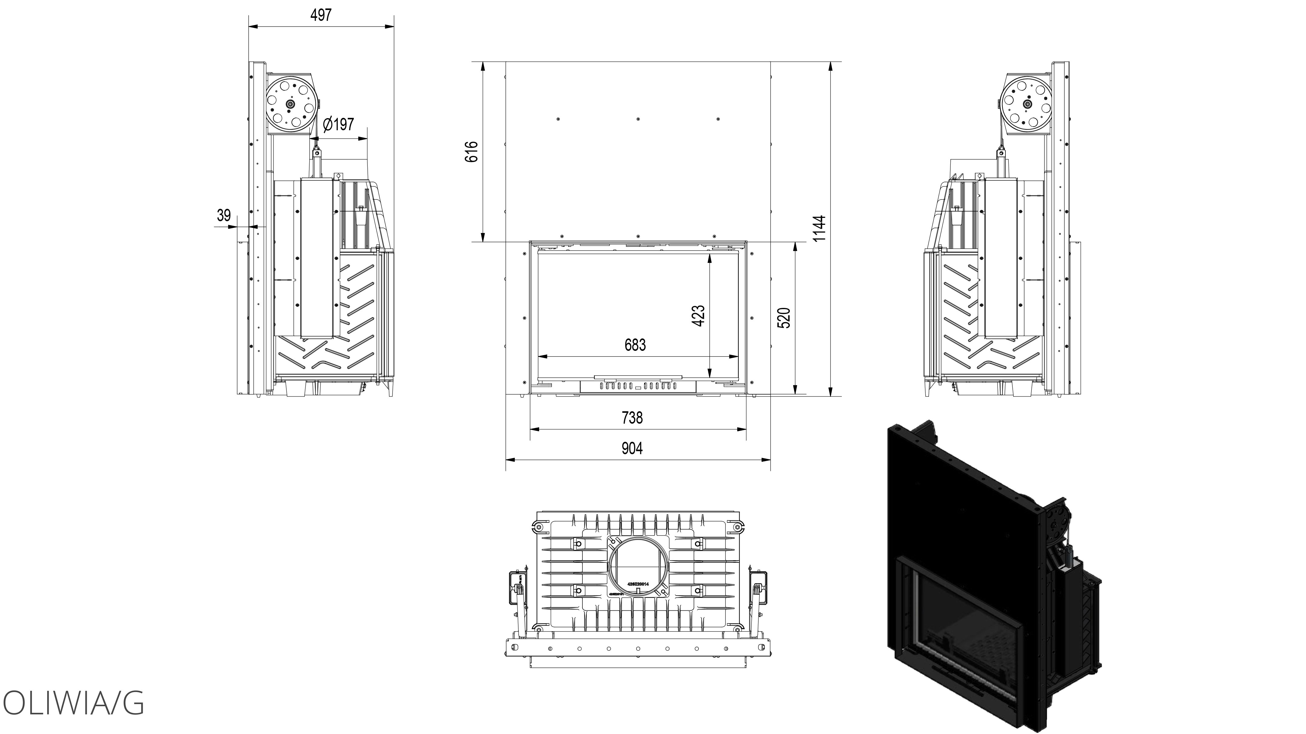 Каминная топка Kratki Oliwia/G классического дизайна с чугунными элементами (дверца, топочная камера). Топка имеет высокую производительность и КПД. В зависимости от теплоизоляции дома, способна отопить 150-180 м2.