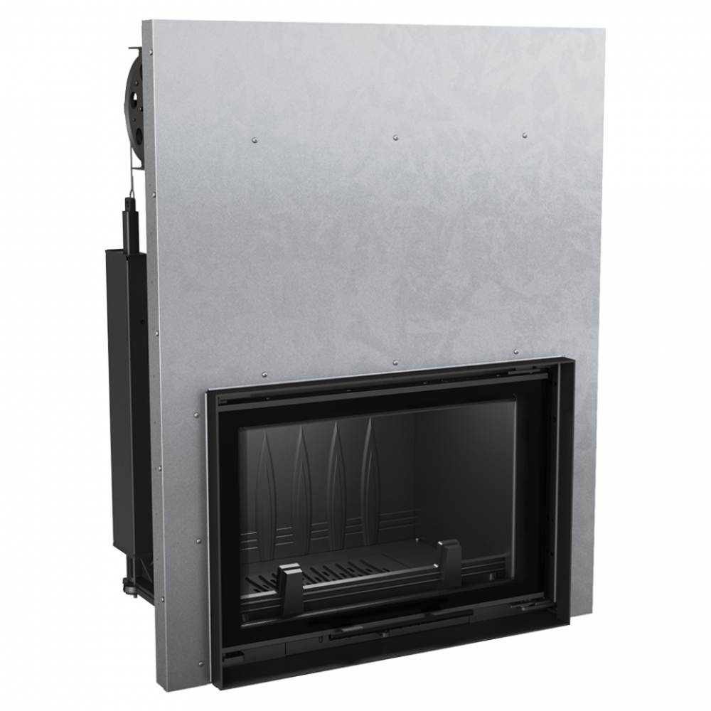 - Дверцы топки работают в системе lift up - стеклянная панель поднимается вверх. Эта система была построена, опираясь в противовес - два блока (по обоим сторонам двери) со стальной рейкой работают в направляющих на двух несущих роликах, благодаря чему вес двери равномерно распределяется. Они движутся вдоль на огнеупорных роликах, установленных в дверной раме, что гарантирует их лёгкое, тихое и бесперебойное функционирование. Движение дверец происходит на расстоянии пару миллиметров от корпуса, что предотвращает повреждение герметизации. Дверцы, которые закрываются, с большой силой погружаются в дверную раму, благодаря чему камера сгорания есть полностью герметичной.