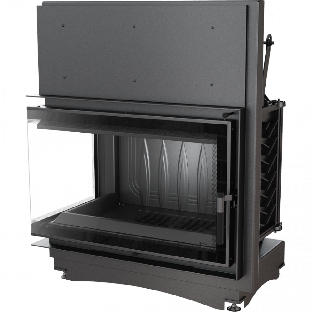 • Декоративная стеклянная панель типа glass, которая выдерживает температуру до 660 °C и предоставляет камину современного и элегантного вида, оптически увеличивает переднюю часть топки.