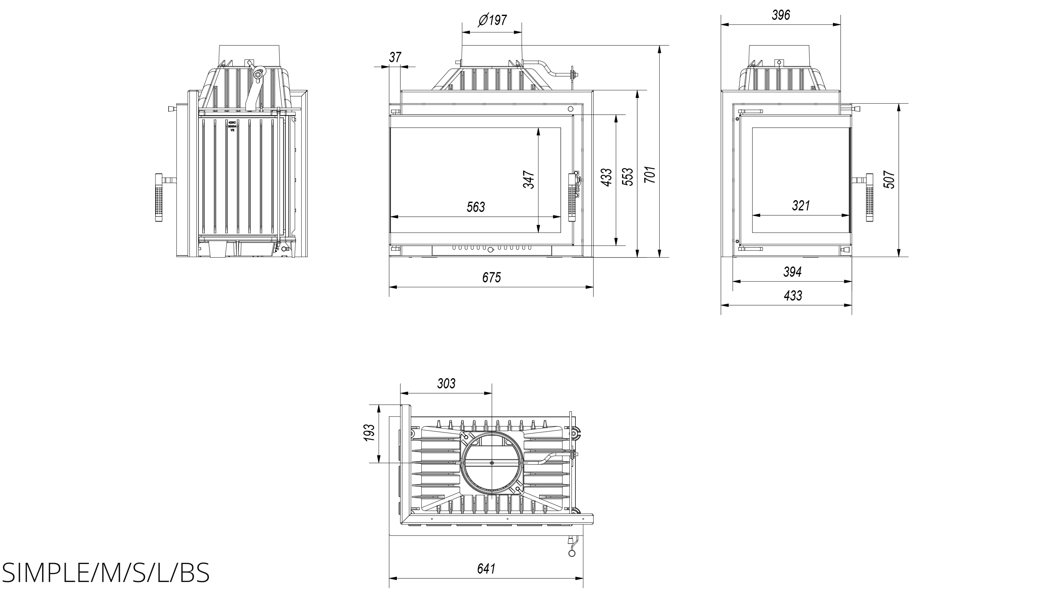 • Ручное управление тягой камина с помощью встроенного шибера.