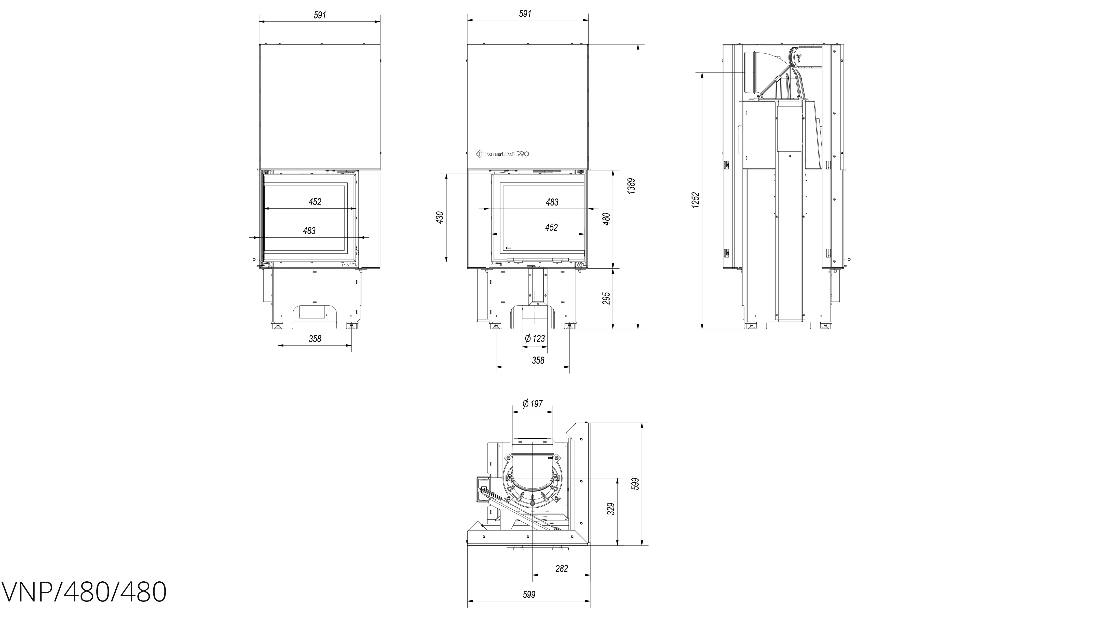 Современная каминная топка Kratki VNP/480/480 (Г-образное стекло справа, гильотина) в варианте с дверцами, что поднимаются вверх (гильотина - система подъема) с боковым стеклом без рамы сочетает уникальную эстетику и исключительные функциональные свойства. Вне визуальных качеств, устройство гарантирует исправное отопления помещений и экологическое сжигание древесины.