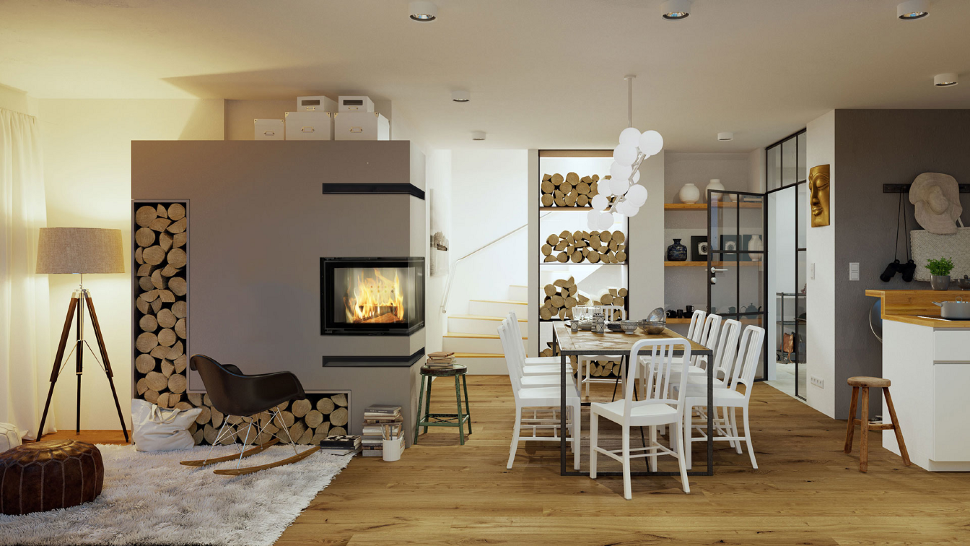 - установка дровяного камина довольно сложна и занимает много времени сама по себе, не говоря уже о попытке вписать такой камин в готовый интерьер; - устройству дымохода следует уделить особое внимание, так как при ошибках в конструкции камин может начать дымить внутрь помещения; - необходимость установки дымохода сильно усложняет процесс размещения камина в городской квартире, особенно, если квартира располагается не на последнем этаже; - необходимо заранее продумать, где будут храниться дрова; - нужно помнить, что при использовании для топки дров потребуется постоянная чистка дымохода от золы;