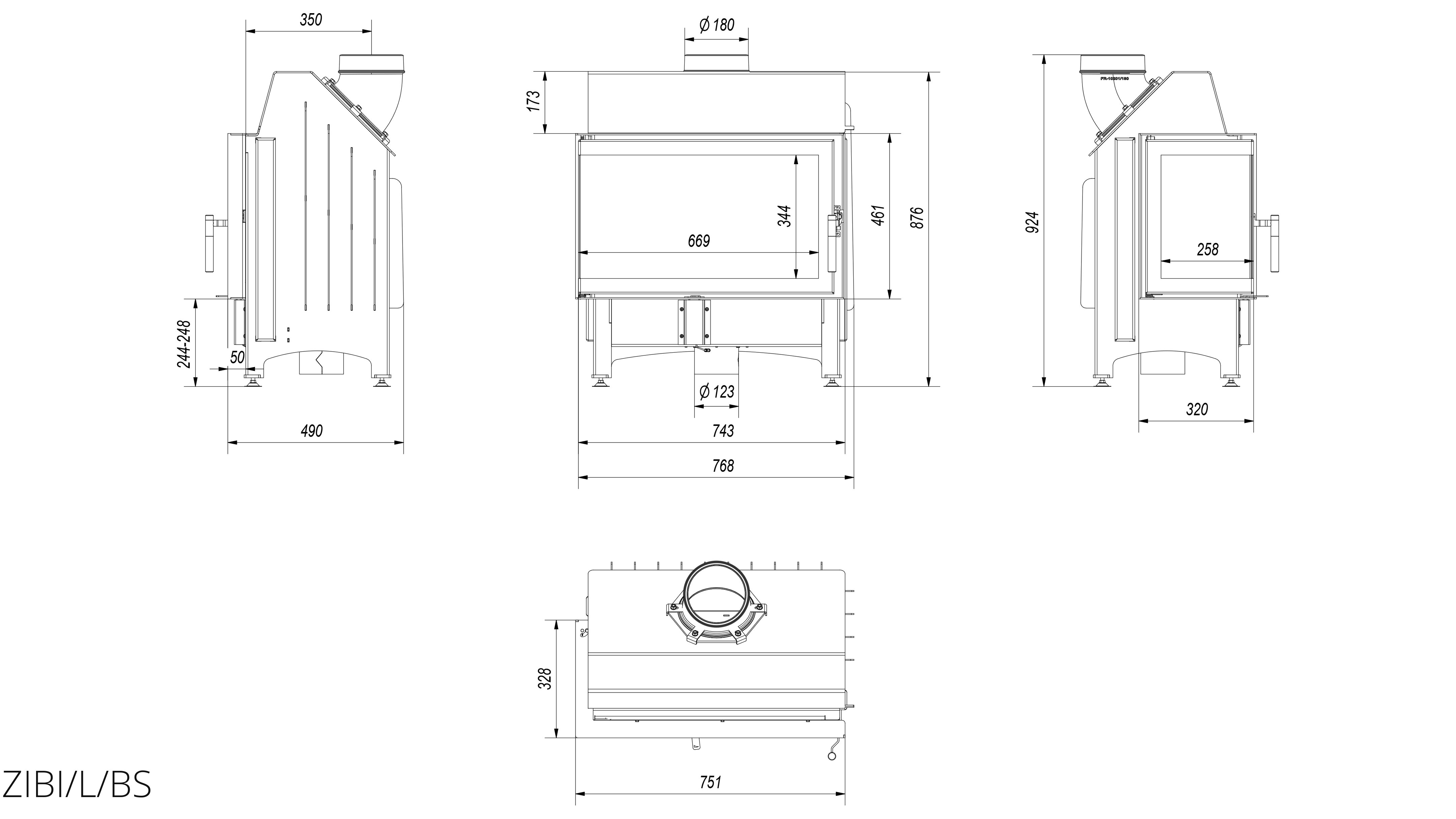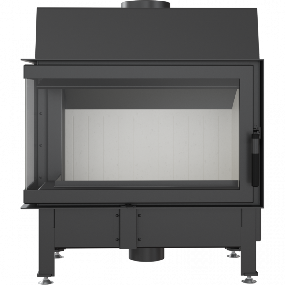 Стальная каминная топка Kratki Zibi/L/BS (Г-образное стекло слева) с современной панорамной передней стороной, что делает ее более широкой, чем есть на самом деле.