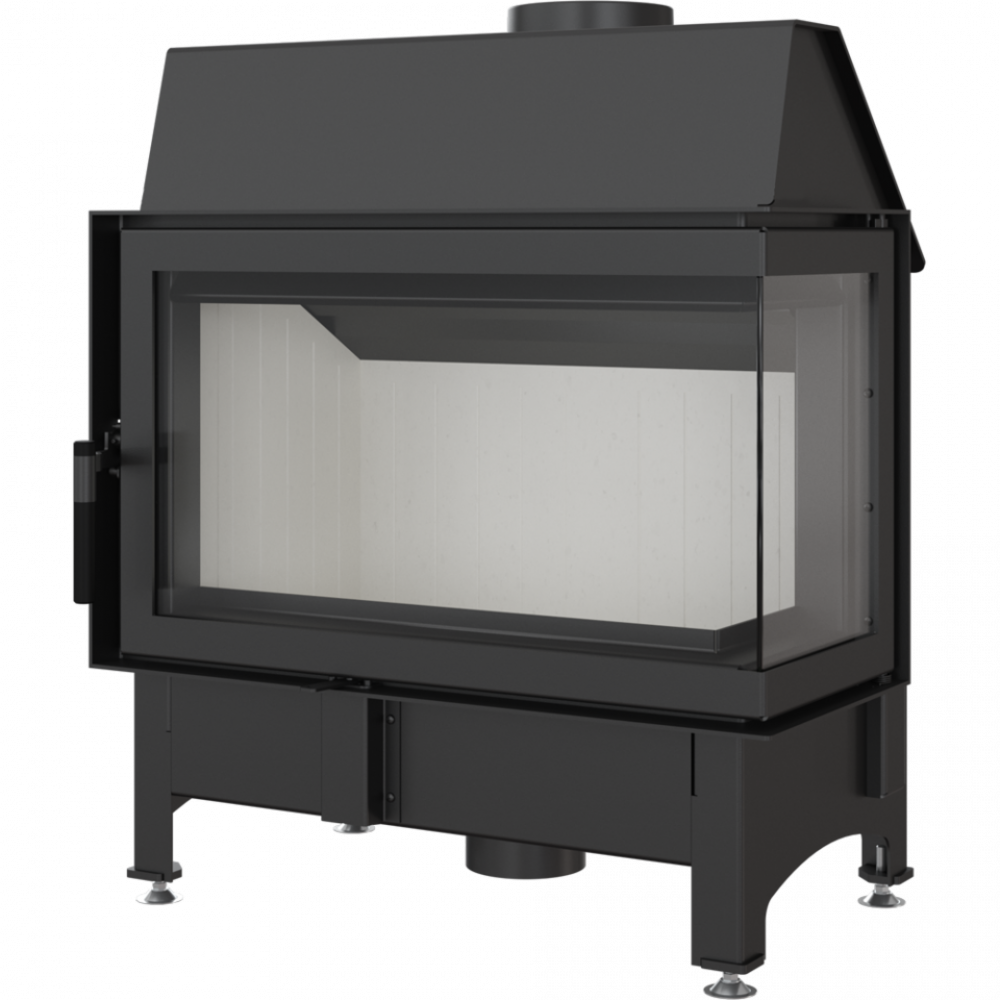 Стальная каминная топка Kratki Zibi/P/BS (Г-образное стекло справа) с современной панорамной передней стороной, что делает ее более широкой, чем есть на самом деле.