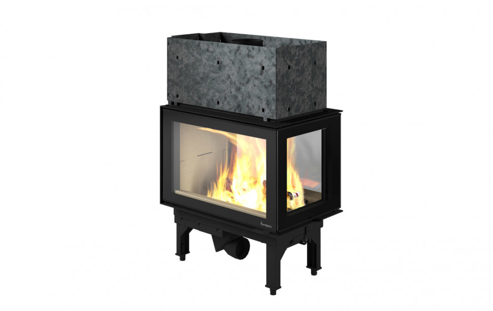 Прекрасно подойдет для обустройства камина в гостиной комнате. Боковая стенка и дверца имеют двойные стекла, с нанесением теплоотражающего покрытия, которое направляет тепловую энергию внутрь топки, что позволяет стеклу оставаться чистым, а процесс сгорания дров становится более эффективным. Футеровка топки выполнена из специальной жаростойкой керамики Аккумотт. Для большей теплоотдачи, можно дополнительно приобрести теплоаккумулирующий комплект.