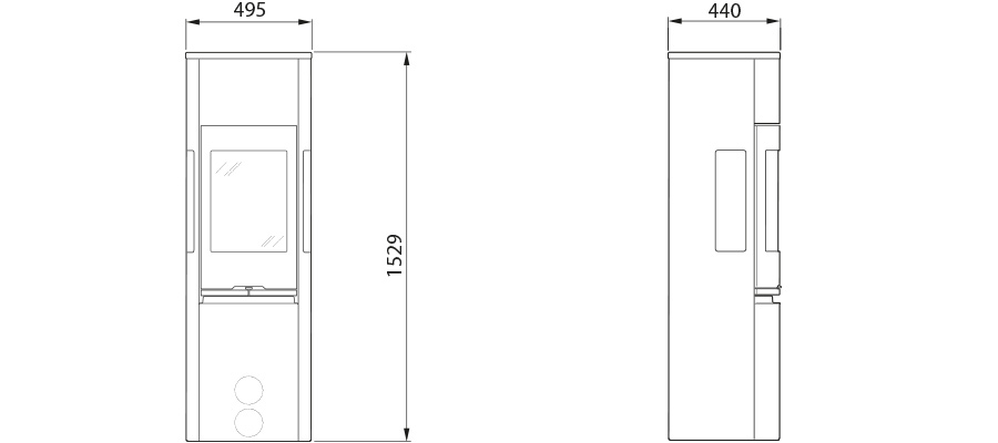 Contura 596 - высокий камин с панорамной дверцей и большими боковыми стеклами. Для увеличения тепловой мощности можно установить вентилятор. Чтобы повысить сохранение тепла - установите дополнительный теплонакопительный блок.