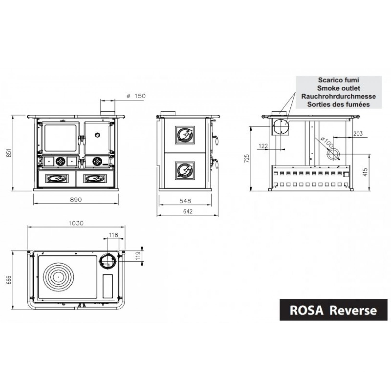 Она сочетает в себе три основных компонента, которые не только способны обеспечивать Ваш дом быстрым и качественным обогревом, но и сделать жизнь намного проще. Печь-камин La Nordica-Extraflame Rosa Reverse оснащена вместительным духовым шкафом и поверхностью для варки. Изготовлена печь камин из литого чугуна высокого класса, который, как известно, обладает отличной теплоотдачей, благодаря чему помещение нагревается быстрее. А за счет прочности чугуна, печь прослужит более длительное время. Духовой шкаф печи-камина Rosa Reverse покрыт специальной термоустойчивой эмалью.