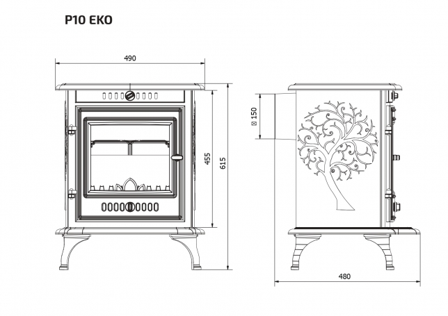 - Чугунная печь Kaw-Met P10 выгодно отличается более точной регулировкой подачи воздуха через нижнюю часть дверцы под колосниковую решетку. Открыв ее на максимум, вы подаете к дровам оптимальное количество воздуха для быстрого розжига.