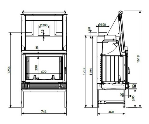 Система «чистое стекло» - технология, которая позволяет стеклу камина долгое время оставаться чистым и не коптиться. Также топка оснащена регулировкой подачи воздуха на горение и шиберной заслонкой с автоматическим открыванием(при открывании дверцы, шиберная заслонка открывается автоматически, данное преимущество позволяет максимально ограничить проникновение дымовых газов в комнату).